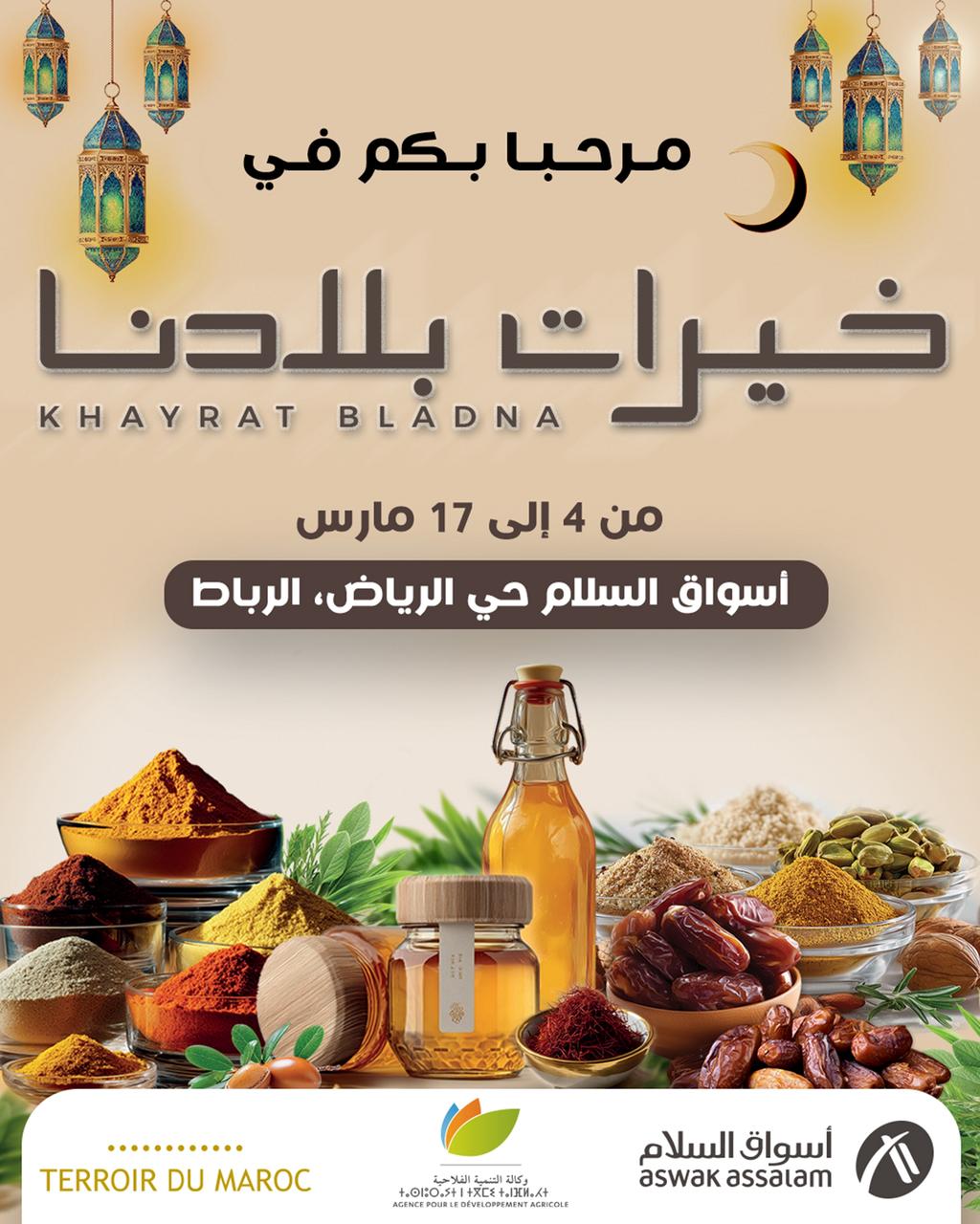 وسيتم في إطار هذه المبادرة، تسليط الضوء على خبرات التعاونيات المغربية، داخل متجر «أسواق السلام» بحي الرياض، خلال الفترة الممتدة ما بين 4 و17 مارس الجاري، وهو الحدث الذي يجمع المنتجين والمستهلكين، ويقدم للزوار فرصة من أجل اكتشاف ثروات المنتجات الوطنية.