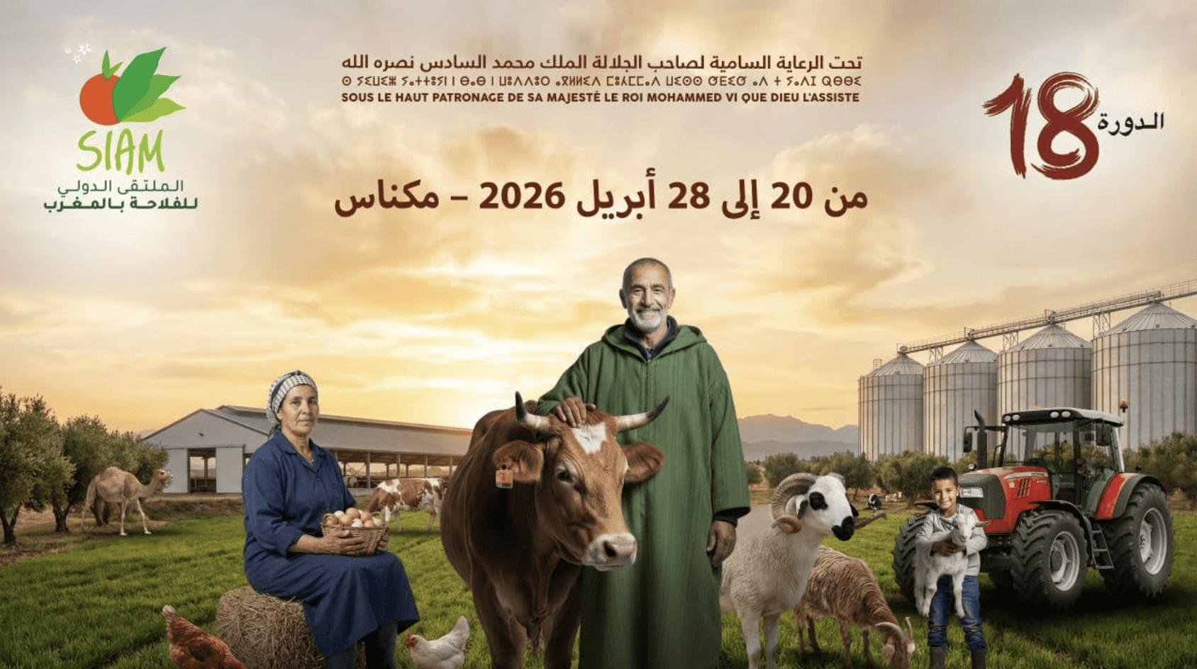 تحت الرعاية السامية لصاحب الجلالة الملك محمد السادس، نصره الله، تحتضن مدينة مكناس، من يوم الاثنين 20 أبريل 2026 إلى يوم الثلاثاء 28 أبريل 2026، فعاليات الدورة الثامنة عشرة للملتقى الدولي للفلاحة بالمغرب، «SIAM»، المنظم هذه السنة تحت شعار «استدامة الإنتاج الحيواني والسيادة الغذائية»، وستحل البرتغال ضيف شرف هذه الدورة.